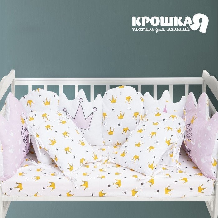 Бортики в кроватку Крошка Я «Little queen» (60х42см-2шт, 30х42см-4шт, 30х30см-4шт), 100% хлопок