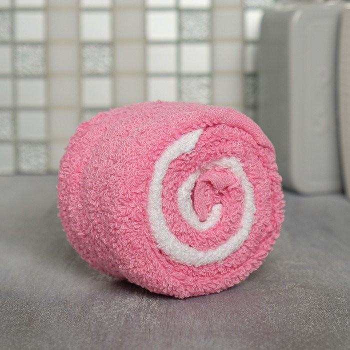 Полотенце-леденец 30 см × 30 см, бело-розовое