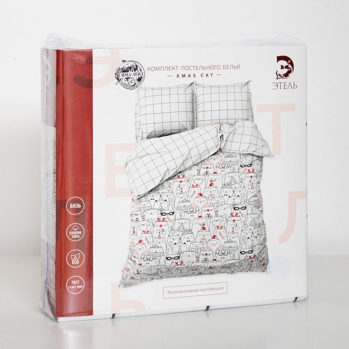 Постельное белье Этель 1.5 сп Xmas cat 143*215 см, 150*214 см, 70*70 см — 2 шт