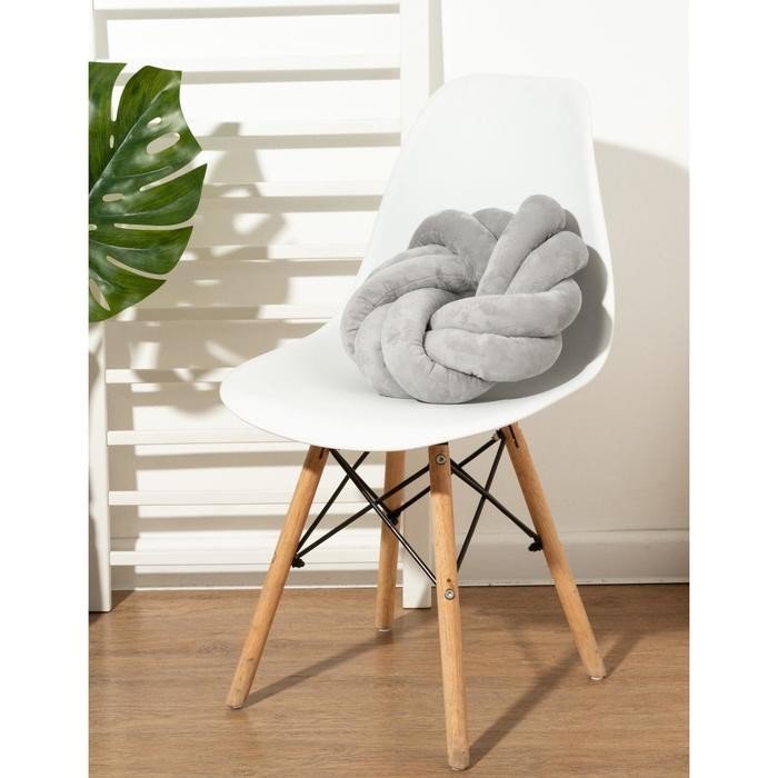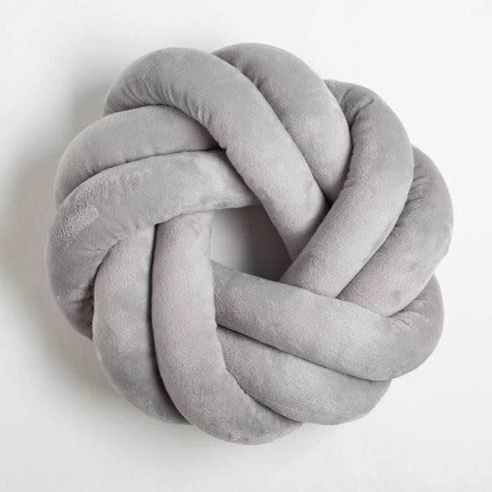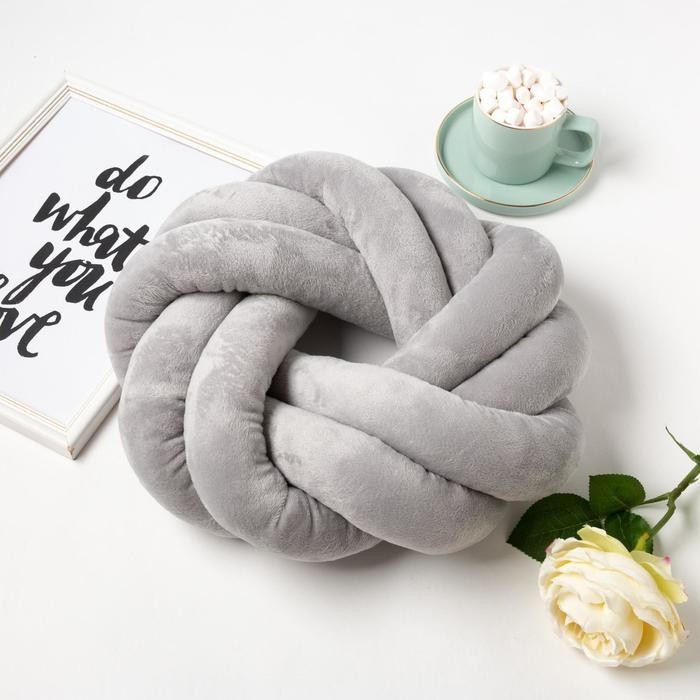 Подушка декоративная узел «Этель», d=33см, цвет серый, велюр