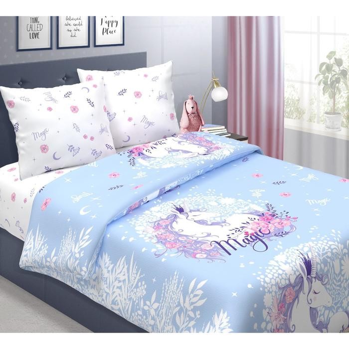 Постельное бельё 1,5сп «Дай поспать» Единорог, голубой 147×217, 150×220, 70х70см — 2 шт
