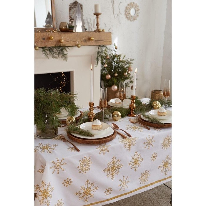 Скатерть «Этель» Золотые снежинки 149х250см, 100%хл, 190 г/м2