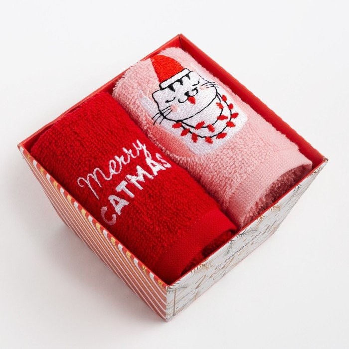 Набор полотенец «Merry catmas» 30×60 см-2 шт, хлопок 340гр/м2