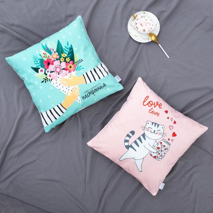 Наволочка Этель «Цветочное настроение» 40×40 см, 100% п/э, велюр