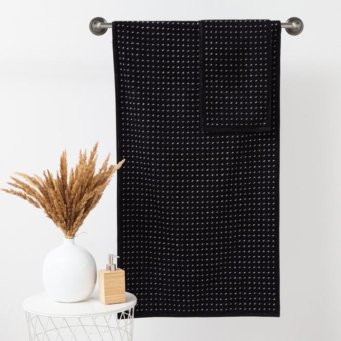 Полотенце махровое Этель ЧБ «Пунктир», пестроткань, 70×130 см