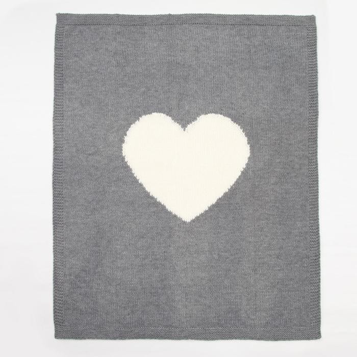 Плед вязаный Крошка Я «Сердце» цвет серый, 75×95 см