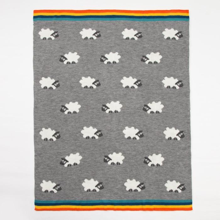 Плед вязаный Крошка Я «Овечки» цв. серый, 80*100 см, 100% хлопок