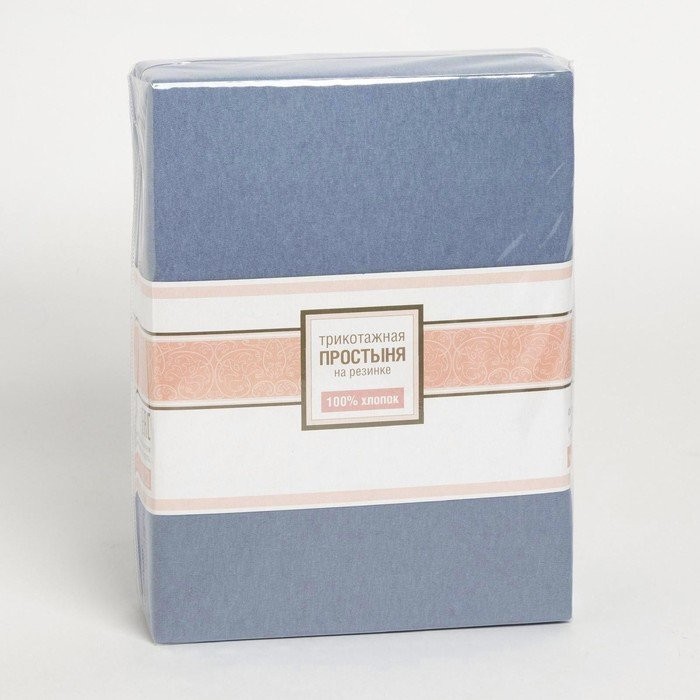 Трикотажная простынь на резинке 140х200х25см, голубой кулирка