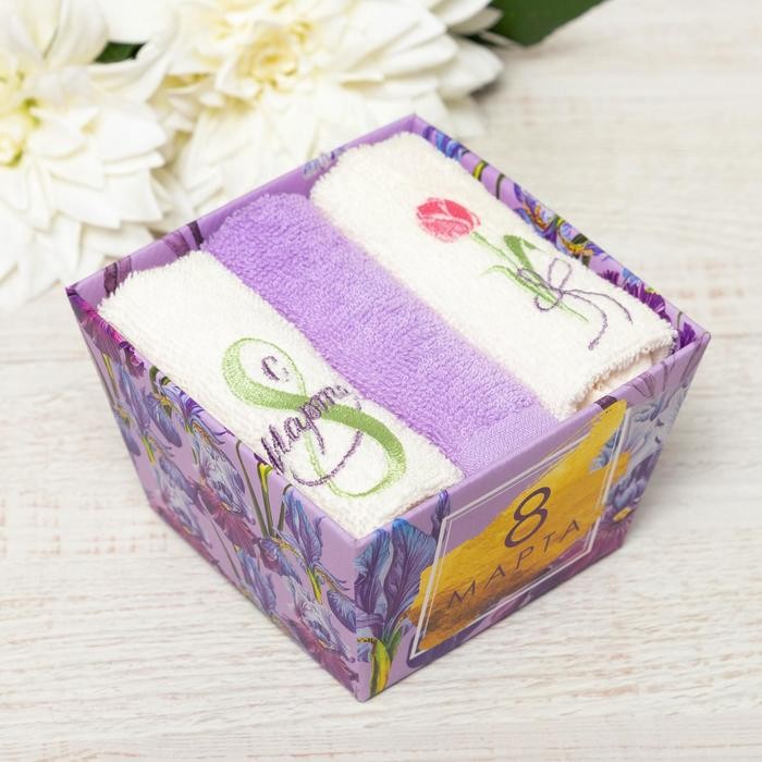 Набор полотенец «8 Марта» 30×30 см-3шт, 100% хлопок 340 гр/м2
