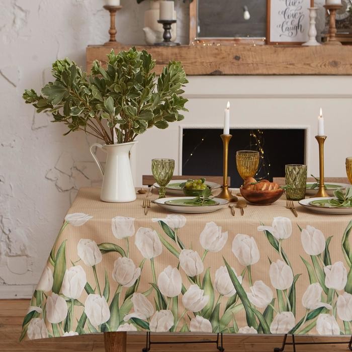 Скатерть «Этель» Белые тюльпаны 149х220см, 100% хл, саржа 190 г/м2