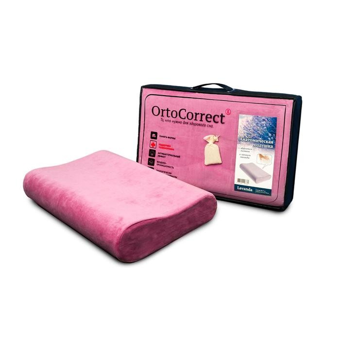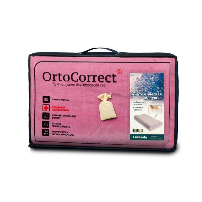 Ортопедическая подушка OrtoCorrect Classic M, с регулировкой высоты, запах лаванды, 58×37 см, валики 9/11 см