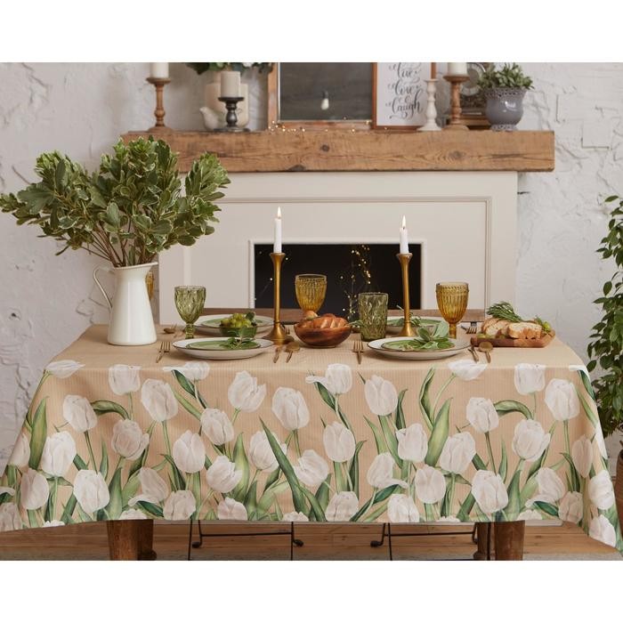 Скатерть «Этель» Белые тюльпаны 149х180см, 100% хл, саржа 190 г/м2