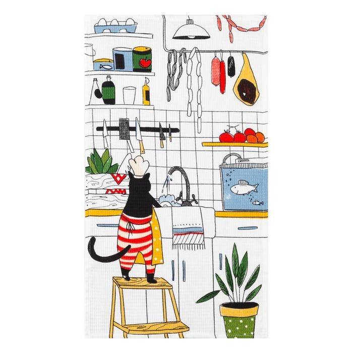 Полотенце кухонное Доляна «Котик на кухне» 35×60 см, 100% хл, 160г/м2