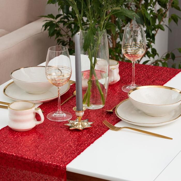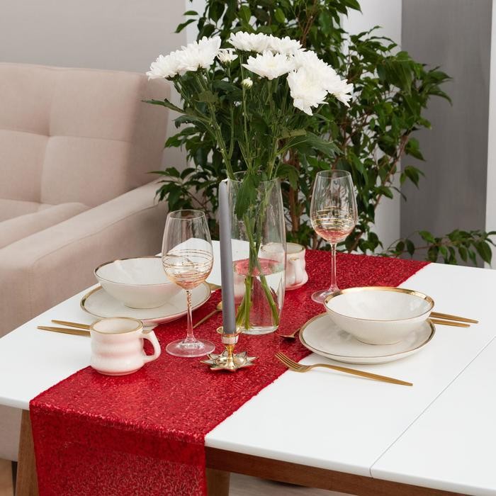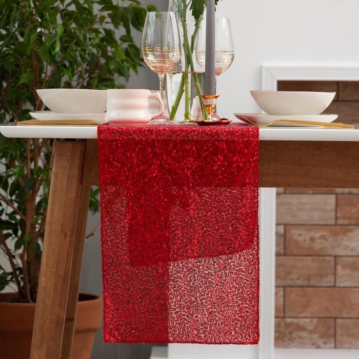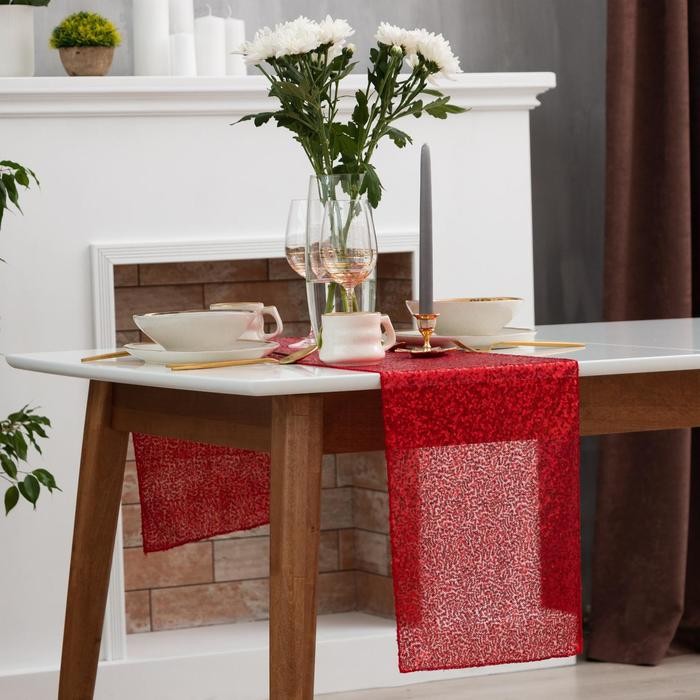 Дорожка с пайетками на стол, цв.красный, 30*120 см
