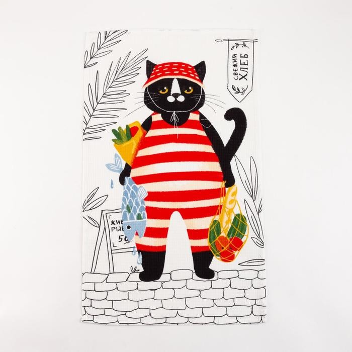 Полотенце кухонное Доляна «Кот» 35×60 см, 100% хл, 160г/м2