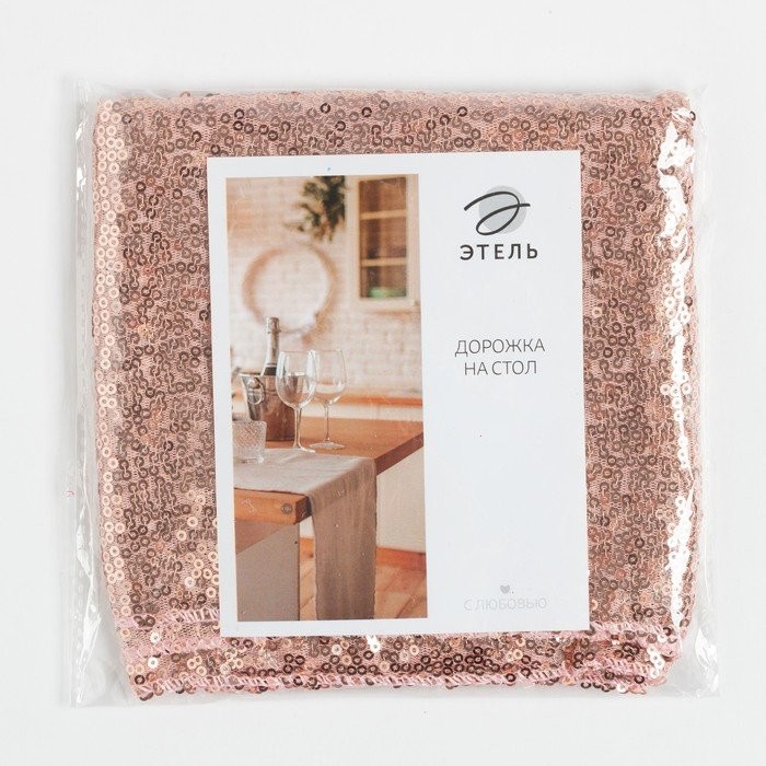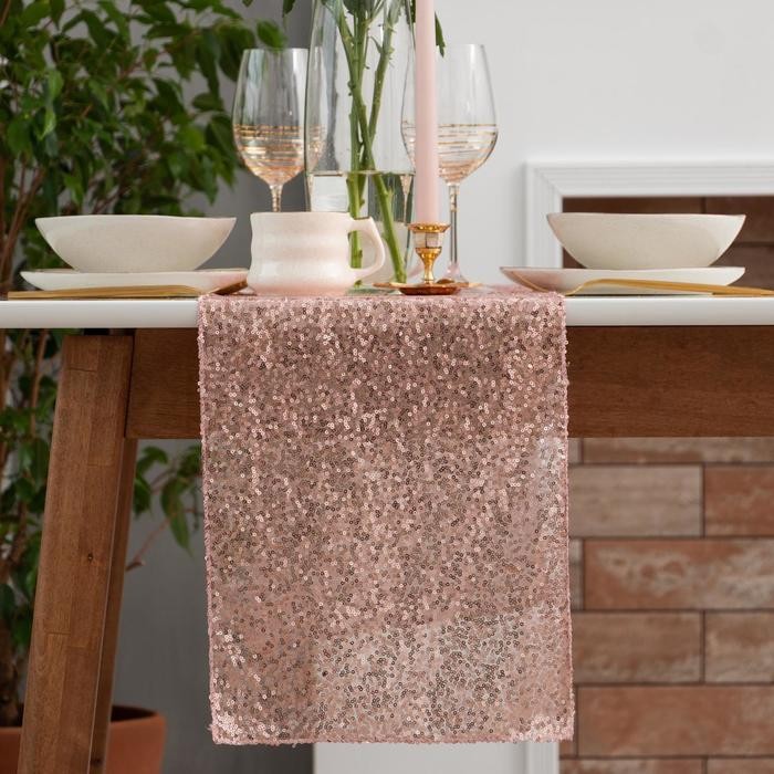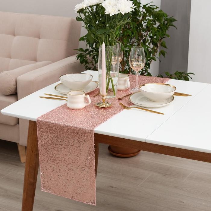 Дорожка с пайетками на стол, цв.пудра, 30*120 см