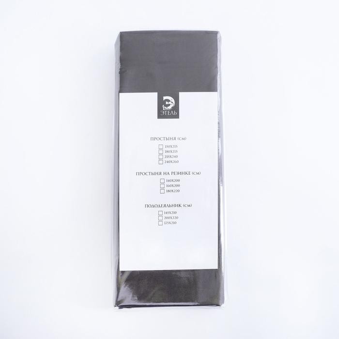 Простыня на резинке Этель 180*200*25 см, цв.темно-серый, 100% хлопок, мако-сатин, 125 г/м²