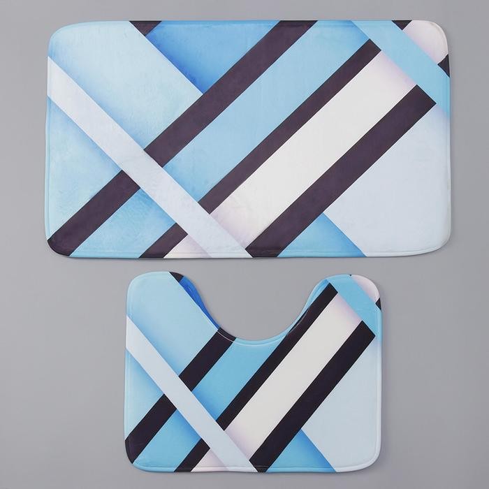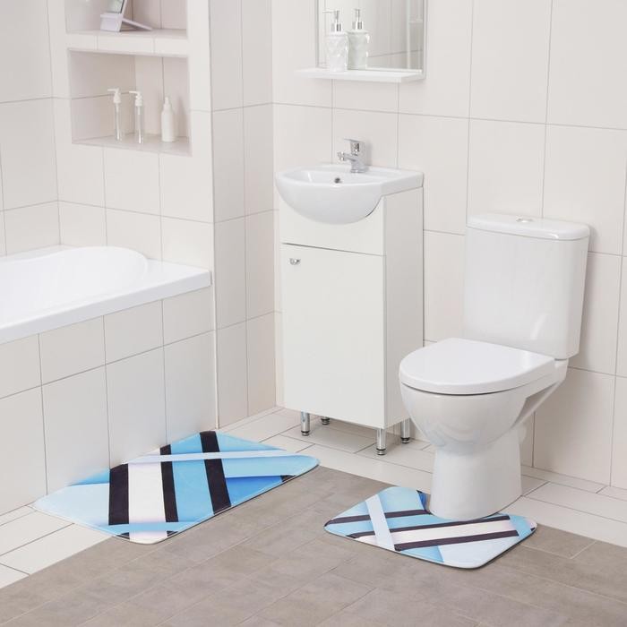 Набор ковриков для ванны и туалета Доляна «Полосатый», 2 шт: 40×50, 50×80 см