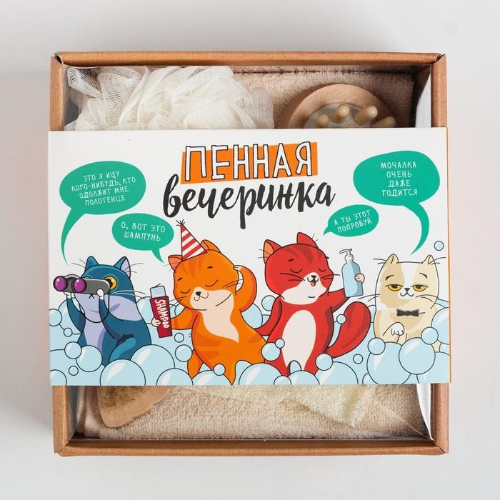 Подарочный набор «Пенная вечеринка» полотенце 30×60 см и банные акс.